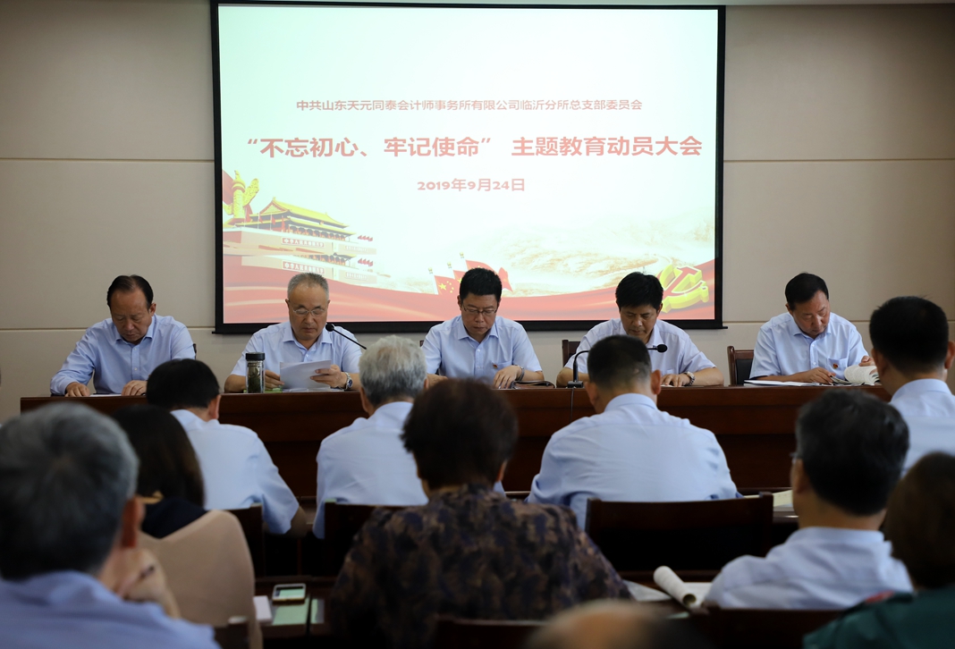 日前,中共山東天元同泰會計(jì)師事務(wù)所黨總支召開動員大會,在全所范圍內(nèi)全面啟動“不忘初心、牢記使命”主題教育活動。會上傳達(dá)學(xué)習(xí)了注冊會計(jì)師行業(yè)黨委和市行業(yè)黨委的有關(guān)文件,公布了事務(wù)所 “不忘初心、牢記使命”主題教育活動實(shí)施方案,總支書記裴波苓作了主題教育工作部署,對開展各項(xiàng)活動進(jìn)行了安排。同時,組織全體黨員進(jìn)行第一次集中學(xué)習(xí)。 9月12日,事務(wù)所黨總支、審計(jì)評估支部和項(xiàng)目管理支部支部書記與黨務(wù)工作者參加了省注協(xié)行業(yè)黨委召開的主題教育動員部署視頻會議。在省注協(xié)行業(yè)黨委下發(fā)主題教育實(shí)施方案后,事務(wù)所黨總支立即召開了總支擴(kuò)大會議進(jìn)行學(xué)習(xí),對如何開展主題教育活動進(jìn)行了安排,研究并制訂了實(shí)施方案??傮w要求是以深入學(xué)習(xí)習(xí)近平新時代中國特色社會主義思想為根本任務(wù),結(jié)合事務(wù)所實(shí)際深入貫徹“守初心、擔(dān)使命,找差距、抓落實(shí)”的總體要求,以事務(wù)所脫鉤改制20周年為契機(jī),推動事務(wù)所黨員和從業(yè)人員全面系統(tǒng)學(xué)習(xí)貫徹習(xí)近平新時代中國特色社會主義思想,教育引導(dǎo)全體人員發(fā)揚(yáng)革命傳統(tǒng)和優(yōu)良作風(fēng),忠誠擔(dān)當(dāng),誠信執(zhí)業(yè),再創(chuàng)佳績。具體工作安排要結(jié)合本事務(wù)所和黨員實(shí)際,創(chuàng)造性的落實(shí)理論學(xué)習(xí)教育、調(diào)查研究、檢視問題、整改落實(shí)具體任務(wù)。
