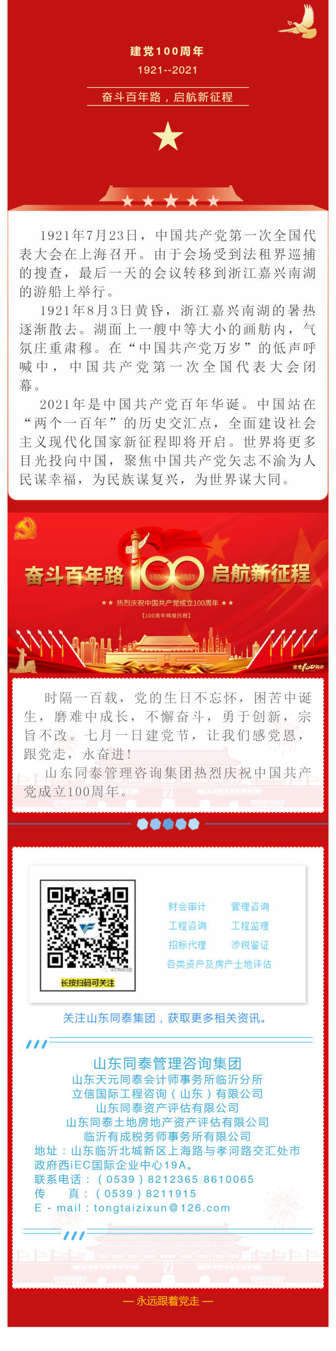 山東同泰管理咨詢集團(tuán)熱烈慶祝中國(guó)共產(chǎn)黨成立100周年