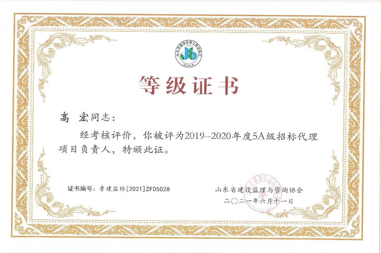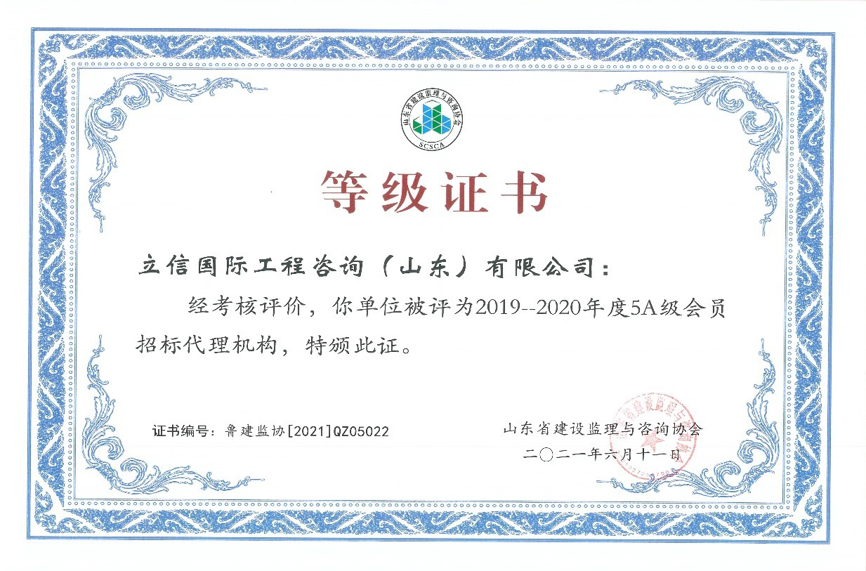 | 我公司獲得山東省首批5A級監(jiān)理企業(yè)、5A級招標代理機構(gòu)、4A級全過程工程咨詢單位 |