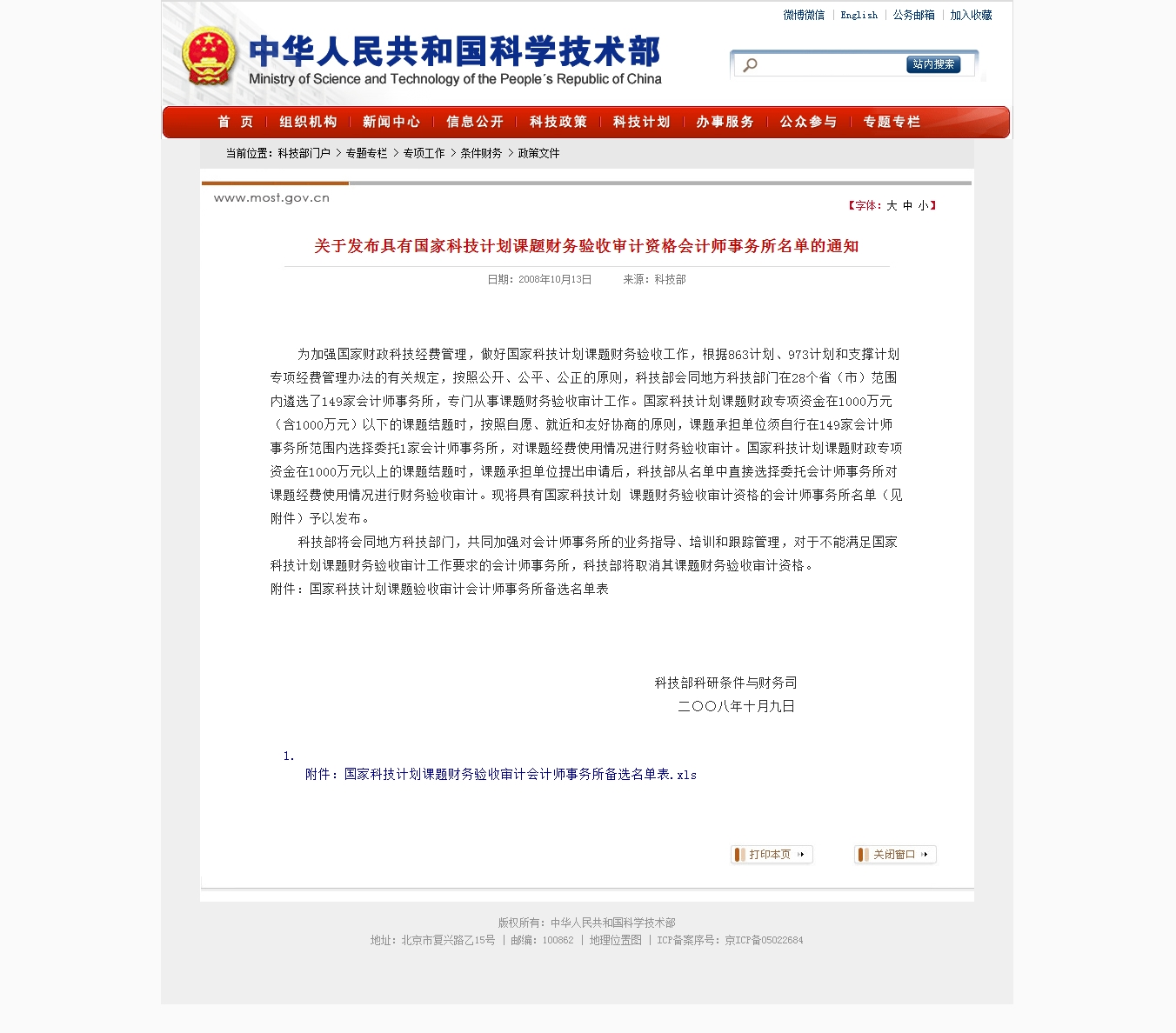 關(guān)于發(fā)布具有國家科技計劃課題財務驗收審計資格會計師事務所名單的通知