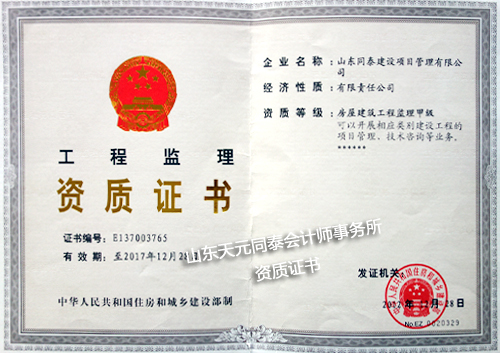 工程建設(shè)監(jiān)理甲級資質(zhì)